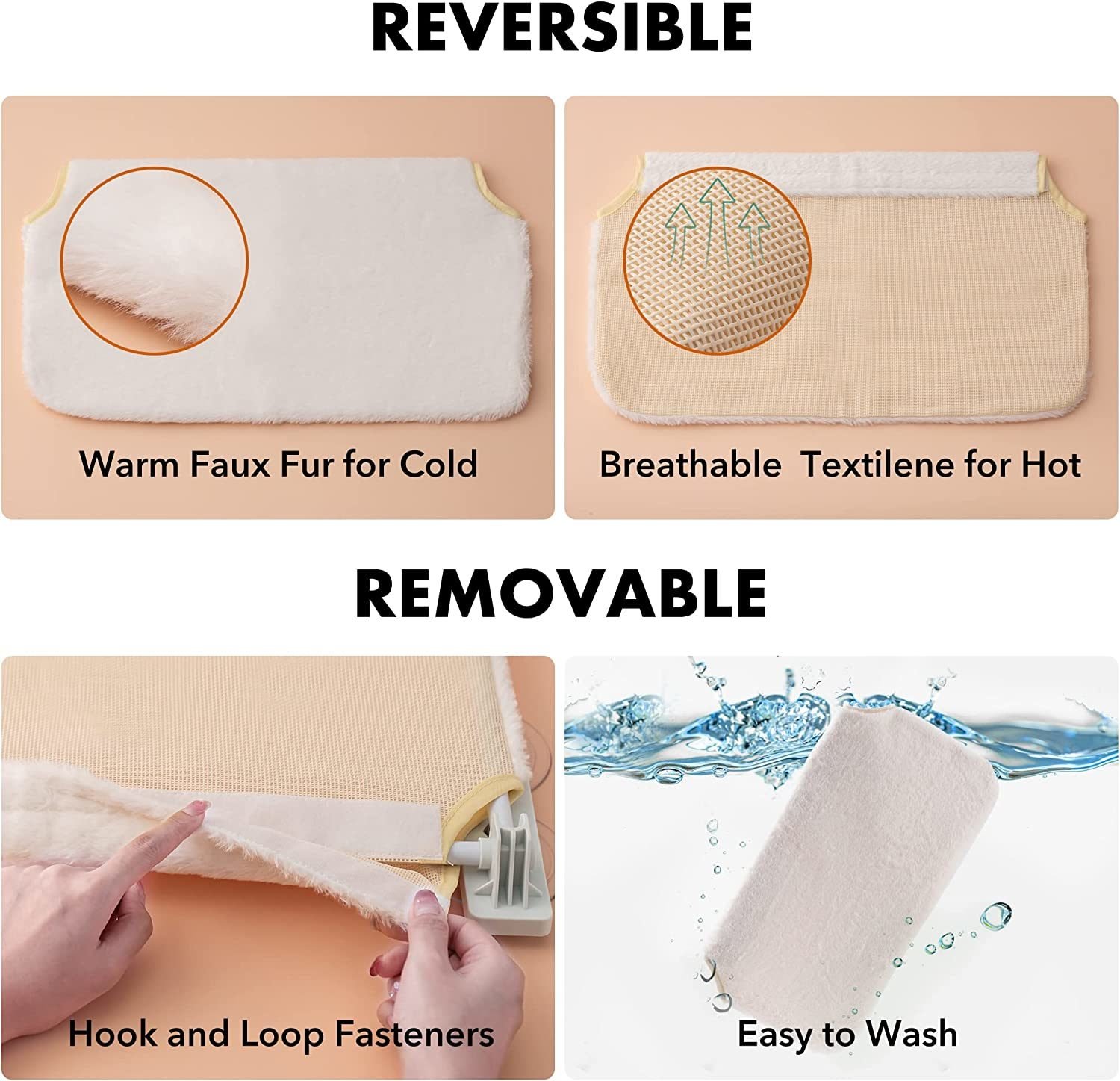 1. Superior Materials: The frame is made of high-grade steel instead of plastic; and the large suction cups hold the cat widnow bed firmly in place.It can hold up to 40 pounds; and the mat is reversible.